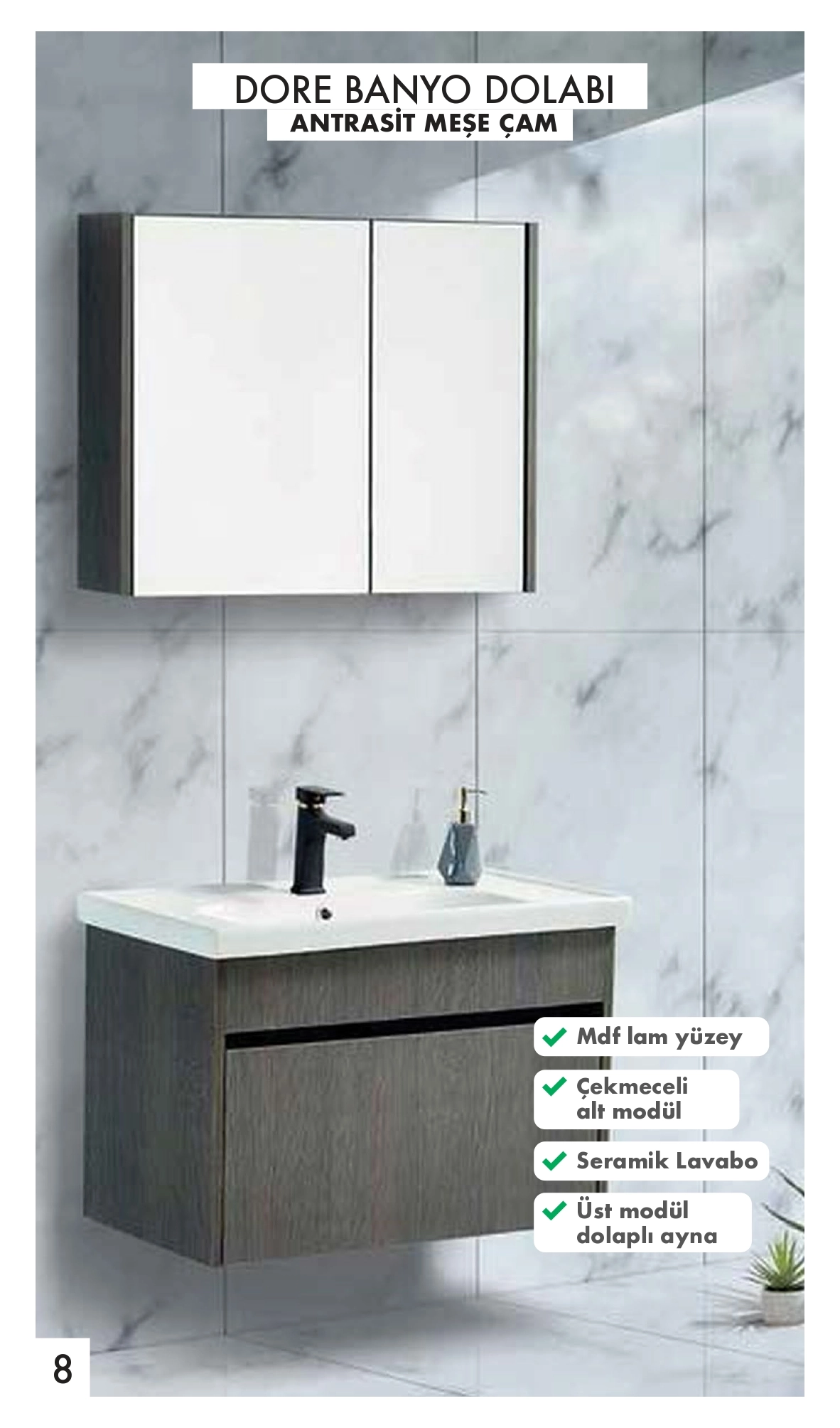 Banyo Dolabı Banyoları düzenli ve estetik hale getiren banyo dolapları, farklı boyut ve tasarımlarıyla her mekâna uyum sağlar.